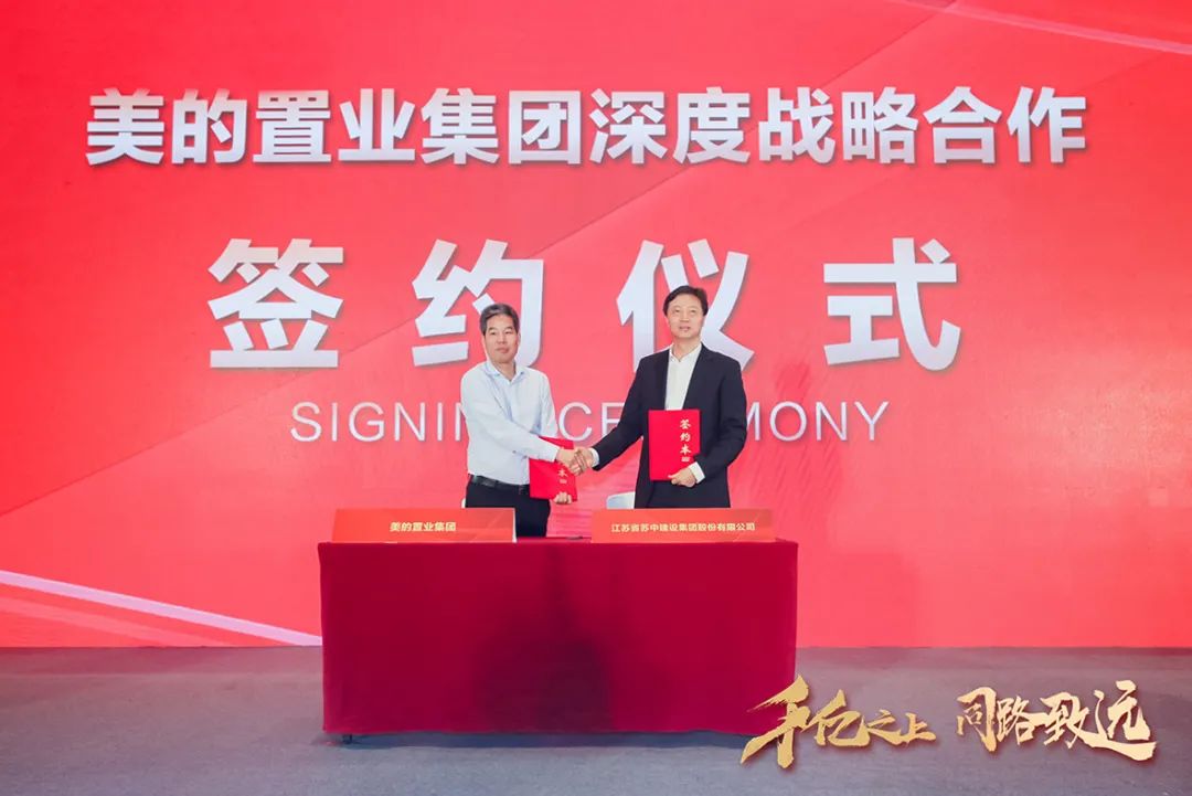 大會現場舉行了隆重的戰略合作簽約儀式,作為唯一一家總承包類的戰略合作伙伴,陳永明總裁代表蘇中建設與美的置業執行副總裁王全輝簽署了深度戰略合作協議。在美的置業“千億之上”的發展新階段,雙方將以此次簽約為契機,達成更加穩固、健康的合作關系,共擔風雨,共享陽光。